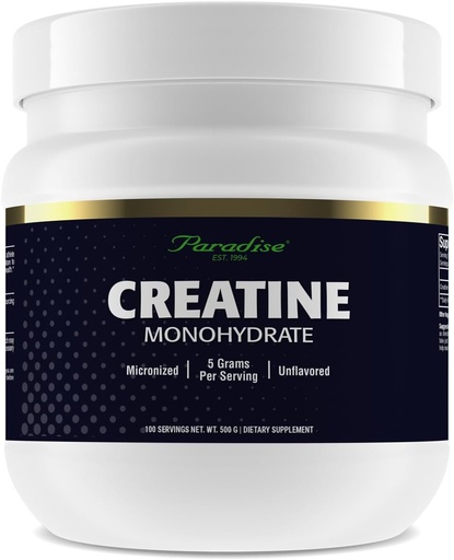 Paradise Creatine Monohydrate Powder, Micronized for Enhanced Absorption, Supports Muscle Building & Athletic Performance, 500g, 100 Servings