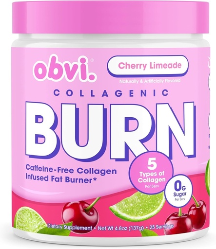 Obvi Collagenic Burn Powder | Collagen Peptide Blend with GBB, Ashwagandha & Green Coffee | Boosts Metabolism, Energy, and Wellness | Supports Skin, Hair, Nails, Joints | Cherry Limeade 25 Servings