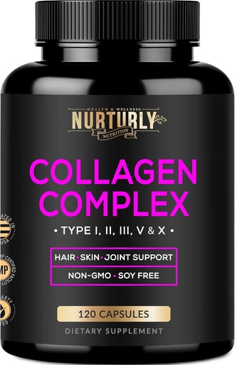 Multi Collagen Peptides Powder Capsules - Hydrolyzed Collagen Peptides Types (I, II, III, V & X) - Collagen Supplements for Hair, Skin & Nails - 120 Capsules