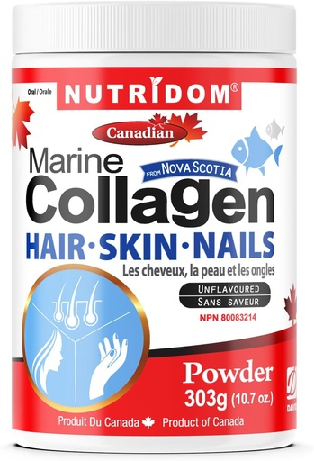 Nutridom Hydrolyzed Marine Collagen Peptides Powder, Wild-Caught from Nova-Scotia, Supports Hair, Skin & Nails, Non-GMO, Free of Gluten, Soy & Dairy (303 g)