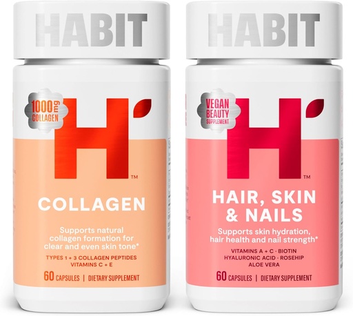 Habit Inner Beauty Bundle - Collagen (60 Capsules) + Hair Skin & Nails (60 Capsules), Supports Skin Hydration & Integrity, Hair & Nail Strength, Non GMO