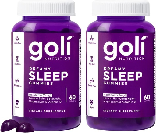 Goli Dreamy Sleep Gummy - 60 Count (Pack of 2) - Melatonin, Vitamin D, Magnesium, and Lemon Balm Extract - Gelatin-Free, Gluten-Free, Vegan & Non-GMO