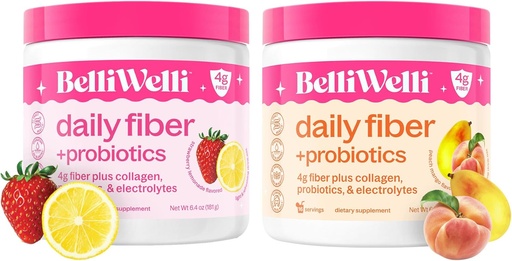Daily Fiber Supplement Bundle with Collagen, Probiotics & Electrolytes - Peach Mango & Strawberry Lemonade Flavors - Supports Digestive Health, Debloating, Gut & Hormone Balance - 32 Servings Total