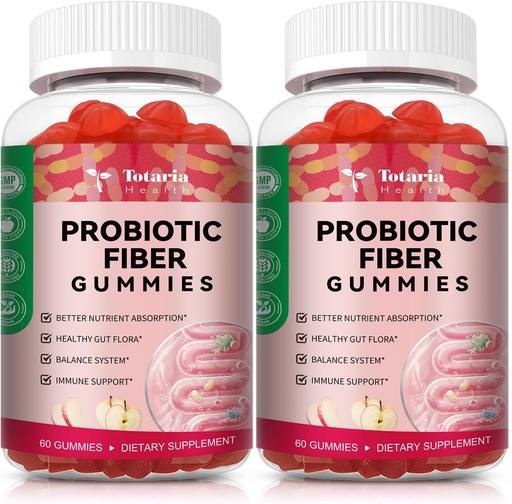 9-in-1 Probiotic Fiber Gummies for Adults & Teens 16G Fiber per Serving, Psyllium Fiber Supplement with 5 Billion CFU Bacillus Coagulans, Inulin, ACV for Digestive, Gut & Immune Wellness - 2 Bottles