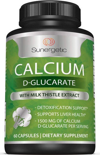 Sunergetic Premium Calcium D-Glucarate Supplement with Milk Thistle Extract - Calcium D-Glucarate for Liver Support & Detox Support – 500mg of Calcium D-Glucarate Per Serving – 60 Capsules