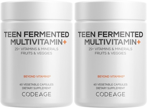 Codeage Teen Multivitamin Supplement – Daily Vitamins and Minerals for Teen Boys and Girls – Organic Whole Food Formula with Omega-3 and Vitamins A to K - 2 Pack
