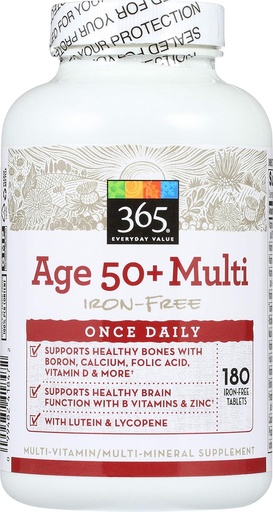 365 by Whole Foods Market, Age 50+ Multi Iron-Free, 180 ct