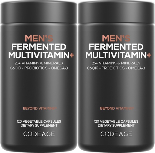 Codeage Men’s Daily Multivitamin – 25+ Essential Vitamins & Minerals, Organic Whole Foods, Probiotics, Omega-3, Zinc, Vitamins A, B, C, D, E & K, 2 Pack