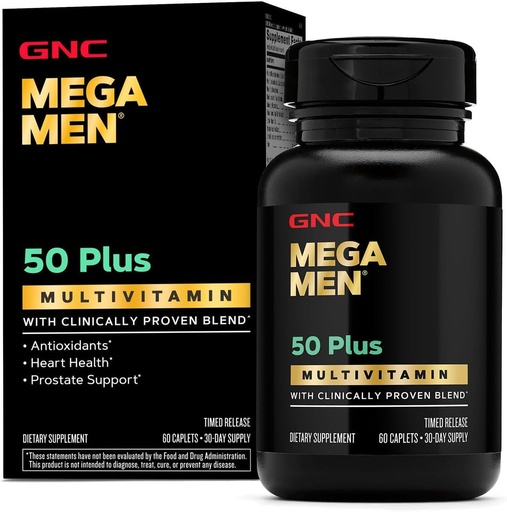 GNC Mega Men 50 Plus Multivitamin Caplets, Clinically Proven, Heart & Prostate Health, B Vitamins, Saw Palmetto, Memory, Vitamin D-3, 60 count