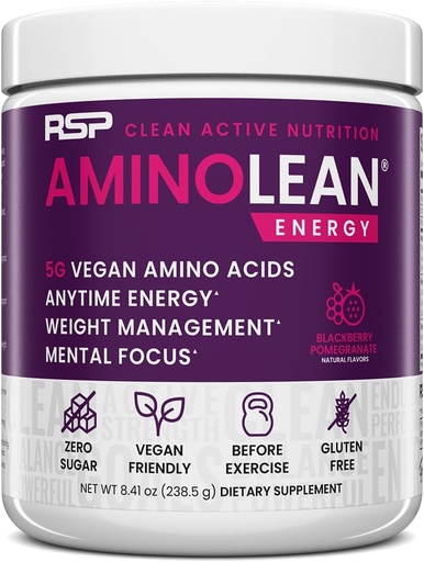 RSP NUTRITION AminoLean Pre Workout Powder, Amino Energy & Weight Management with Vegan BCAA Amino Acids, Natural Caffeine, Preworkout Boost for Men & Women, 30 Serv