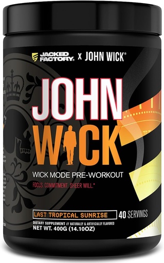 Jacked Factory X John Wick - Wick Mode Pre Workout Powder - Intense Energy, Battle-Ready Focus, Unstoppable Commitment, and Sheer Will - 40 Servings, Last Tropical Sunrise