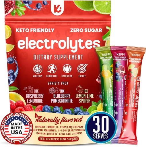 Keppi Electrolytes Powder Packets Assorted Flavors 30 Servings – No Sugar Hydration Supplement with Potassium, Magnesium, Sodium – Keto, Vegan, Fasting-Friendly, Zero Calorie Hydration Packets