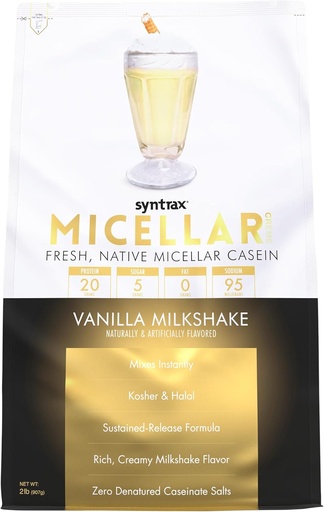 Syntrax Nutrition Micellar Creme Protein Powder, Fresh, Native Micellar Casein, Vanilla Milkshake, 2 lbs
