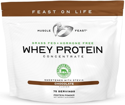 Muscle Feast Grass-Fed Whey Protein Concentrate Powder, All Natural, Hormone Free Pasture Raised Whey Protein Powder for Women & Men, Clean, Non-GMO & Gluten Free Whey Concentrate - Chocolate, 5lb