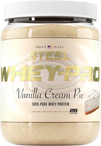Steel Supplements Whey-Pro | 100% Pure Whey Protein Powder for Men and Women | Vanilla Cream Pie | Muscle Gain & Lean Muscle Recovery | Gluten Free | 1.65 lbs | BCAA 5g | Non-GMO | 25 Servings