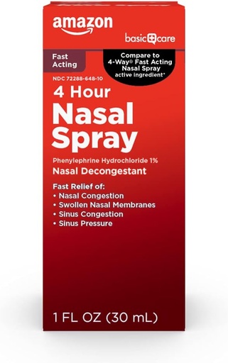 Amazon Basic Care Nasal Four Nasal Spray, Phenylephrine Hydrochloride 1 Percent, Nasal Decongestant, 1 fl oz (Pack of 1)