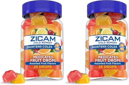 Zicam Cold Remedy Zinc Medicated Fruit Drops, Assorted Flavors, Homeopathic, Cold Shortening Medicine, Shortens Cold Duration, 25 Count (Pack of 2)