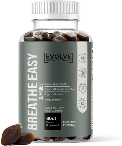 Evolve Breathe Easy Lung Gummies, Mullein Leaf, Boswellia Resin, Nettle Root, Forskolin, Butterbur, Bromelain, Allergy Relief, Asthma, Cough Support, Smokers Lung, Vaping Illness