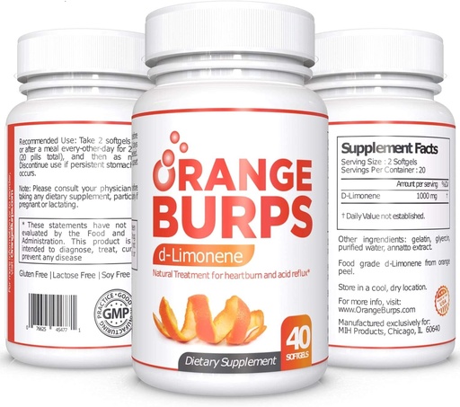 Orange Burps | D-Limonene Supplement - Acid Reducer (Antacid for Acid Reflux), Heartburn Relief, GERD Relief, and Indigestion Relief | Orange Peel Extract for Health and Wellness (1,000 mg, Pack of 3)