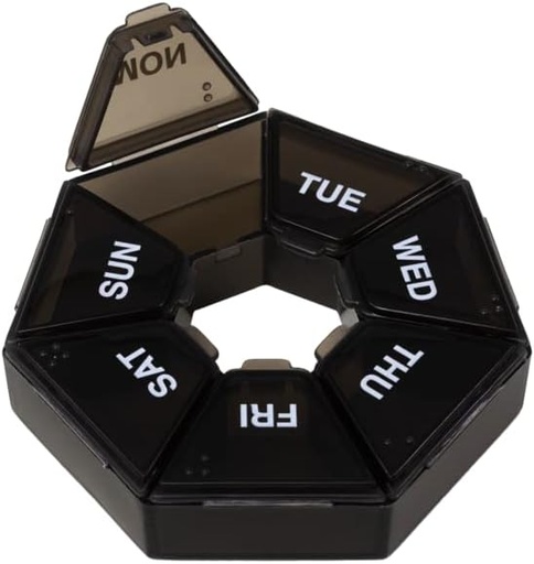 EZY DOSE 7-Day Weekly Pill Organizer, Daily Medicine Container and Vitamin Planner, Round Supplement Case, Compact, Travel Friendly, Portable Storage Sorter, 7-Sided Circle, Black, BPA Free