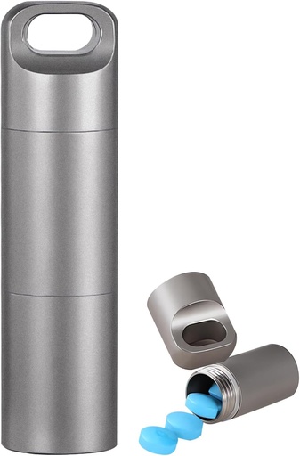 Small Keychain Pill Holder,304 Stainless Steel Portable Pill Case Organizer for Travel,Waterproof Pocket Pill Container Medicine Box for Purse Men (Small Pill Case)