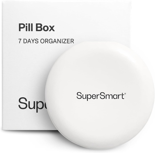 SuperSmart - Pill Box Organizer 7 Days with 1 Cuting Blade for Tablets - Travel Size Item - Small Storage for Supplements & Medications - Easy-to-Use with 7 Large Compartments | White