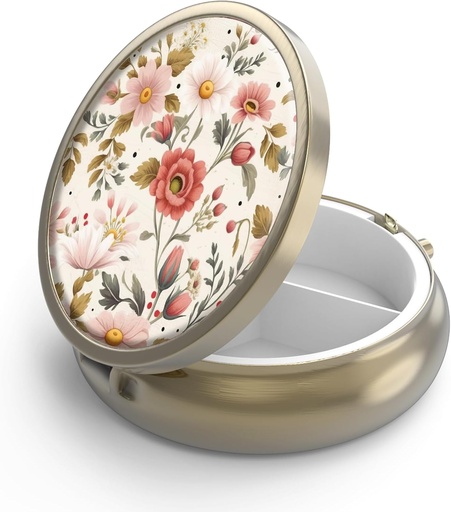 Pill Box-3 Compartment Small Pill Case for Purse & Pocket Mini Metal Pill Holder Travel Pill Container to Hold Supplements Vitamins BPA-Free (Garden Flower)