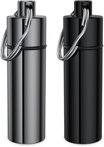 Small Pill Box,(2 Pack) Keychain Pill Holder Portable Mini Travel Pill Container Metal Case Bottle with Keyring