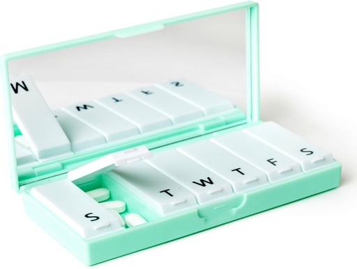 PORT X POLISH Designer Weekly Pill Box Organizer (Single 1X Daily, Mint) | Compact, Stylish 7-Day Vitamin Supplement Case | Cute Portable Mini Travel Medicine Carrier | BPA-Free Pillbox Caddy
