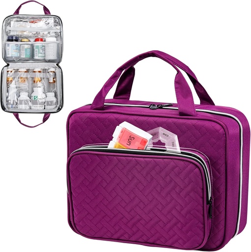 BAGSFY Medicine Bag for Traveling, Pill Bottle Organizer Storage, Large Medication Travel Case, Pills Box for Vitamin, First Aid Kit Bags Empty. (Comes with Weekly Pill Organizer)
