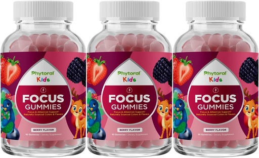 Vegan Kids Focus Gummies - Potent Chewable Brain Support for Children - Enhances Concentration & Memory - Calming Supplements & Focus Gummies for Kids - Non-GMO & Gluten-Free - 60 Count - 3 Pack