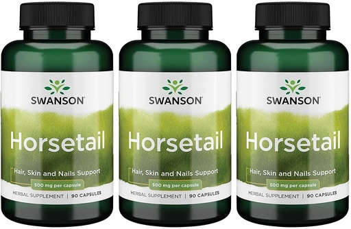 Swanson Horsetail - Herbal Supplement Supporting Healthy Hair, Skin & Nails - Natural Ingredients for Bone Health & Urinary Tract Support - (90 Capsules, 500mg Each) 3 Pack