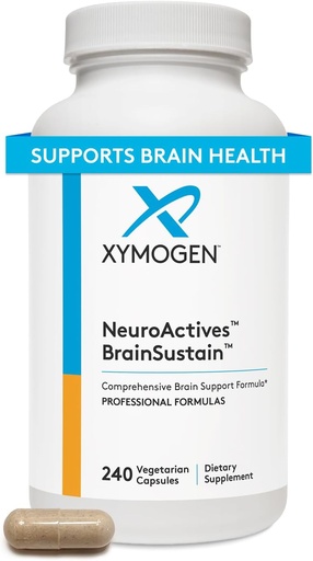 XYMOGEN NeuroActives BrainSustain - Brain Supplements for Memory and Focus Support - Brain Health Supplements for Adults - Vegan, Gluten Free + Non GMO (240 Capsules)