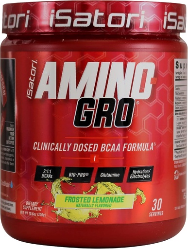 iSatori Amino-GRO BCAA Powder, Branched Chain Amino Acids with Glutamine, Electrolyte Powder & Bio-GRO Bio-Active Peptides for Muscle Growth & Post Workout Recovery, Frosted Lemonade (30 Servings)