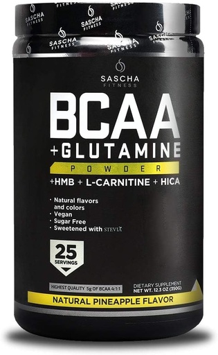 SASCHA FITNESS BCAA 4:1:1 + Glutamine,HMB,L-Carnitine, HICA | Powerful and Instant Powder Blend with Branched Chain Amino Acids (BCAAs) for Pre, Intra and Post-Workout|Natural Pineapple Flavor,362.5g