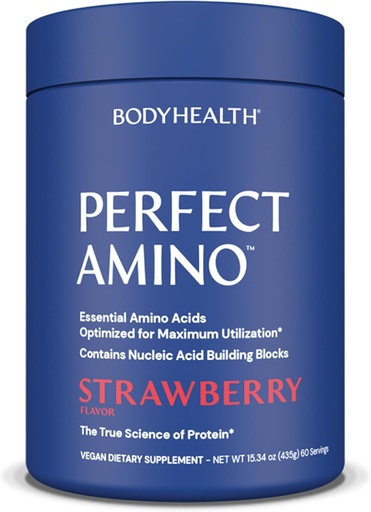 BodyHealth PerfectAmino Powder - BCAA and EAA Powder for Pre and Post Workout - Amino Acid Energy Drink for Men and Women to Support Lean Muscle and Recovery - Strawberry - 120 Servings