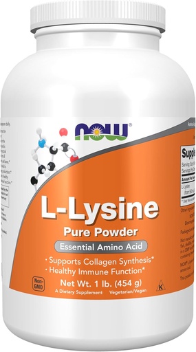 NOW Foods Supplements, L-Lysine (L-Lysine Hydrochloride) Powder, Supports Collagen Synthesis*, Amino Acid, 1-Pound