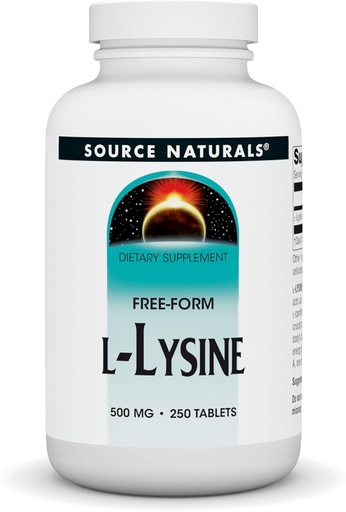 Source Naturals L-Lysine 500 mg Free Form - Amino Acid Supplement Supports Energy & Formation of Collagen* - 250 Tablets
