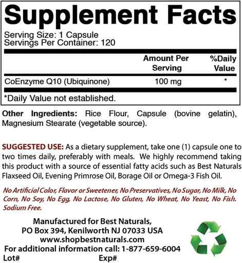 Best Naturals COQ10 100 mg & Vitamin B12 6000 mcg