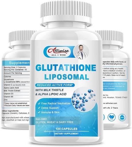 Liposomal Glutathione 1000mg, Glutathione Supplement with Milk Thistle 200mg, Alpha Lipoic Acid 300mg & Vitamin C 500mg, Immune Health Support, Liver Support, Skin Support