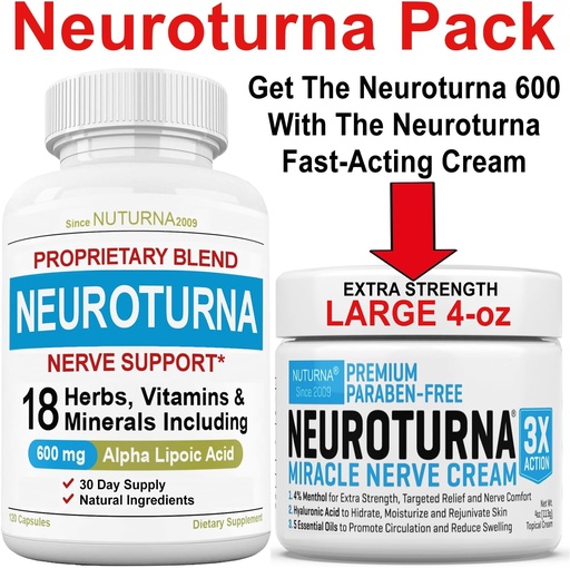 Nerve Relief Cream 4 oz Plus Neuroturna Nerve Support 600 mg ALA Supplement