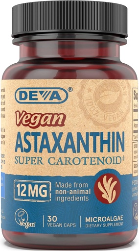DEVA Nutrition Vitamins Astaxanthin 12mg, Vegan, Made from Haematococcus Pluvialis Microalgae, 30 Capsules, 1-Pack