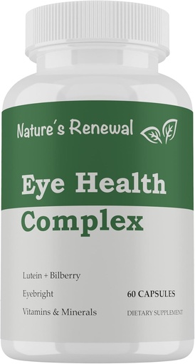 Nature's Renewal Eye Health Complex Supplement - Lutein, Zeaxanthin, Lycopene, Bilberry, Eyebright, Carotenoids, Macular Support Herbs, Sight Care Vitamins, Vision Antioxidants - 60 Capsules