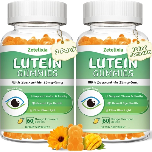 2 Pack Lutein Gummies 25mg, Sugar Free Lutein Zeaxanthin Supplements Gummies, Eye Health Supplement for Adults, Eye Vitamins Lutein for Vision and Blue Light Protection, Mango Flavor, 120 Count