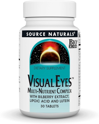 Source Naturals Visual Eyes Dietary Supplement - Multi-Nutrient Complex with Bilberry Extract, Lipoic Acid and Lutein - 30 Tablets