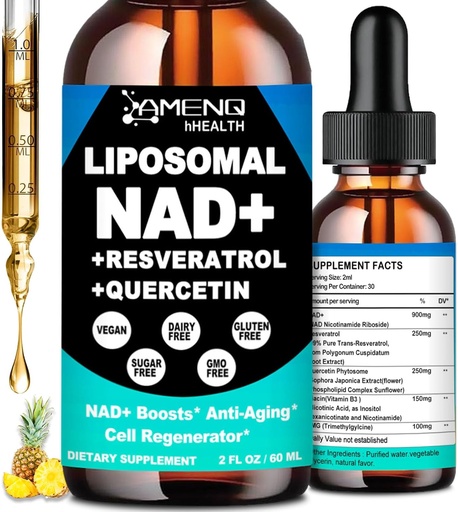 NAD Supplement, Liposomal NAD Nicotinamide Riboside Resveratrol 900mg Quercetion, TMG, Vitamin B3, High Potency NAD Plus Liquid Supplement for Cell Regenerator, Longevity, Energy, Anti-Aging, Focus