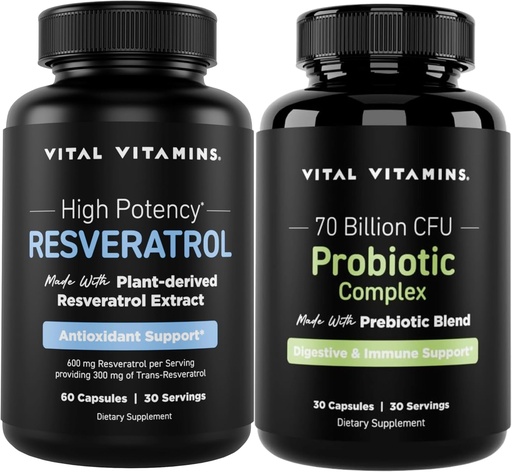 Vital Vitamins Resveratrol Capsules + Probiotic Complex