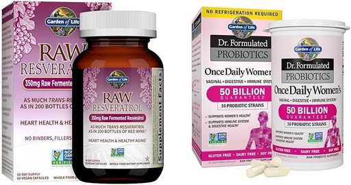 Garden of Life Heart Resveratrol Supplement - Raw Whole Food Antioxidant Formula for Heart Health & Dr. Formulated Women's Probiotics Once Daily, 16 Strains, 50 Billion, 30 Count