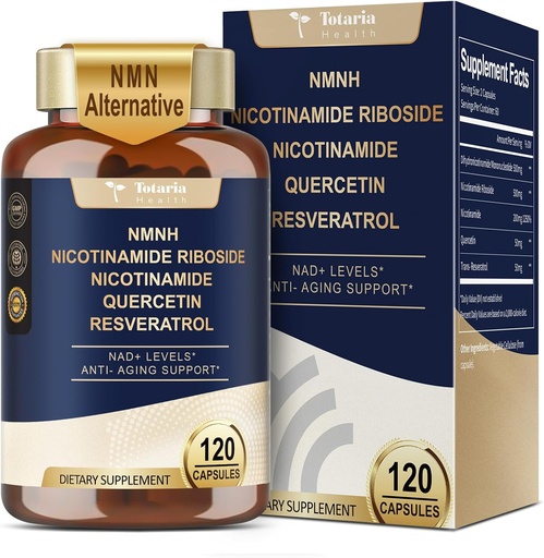 Totaria NMNH (Dihydronicotinamide Mononucleotide) Supplement w/Niacinamide (Vitamin B3), Quercetin, Trans-Resveratrol, Support NAD+, Skin Cell Health*, Anti-Aging & Energy, 120 Caps