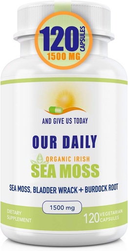 Our Daily Vites Organic Sea Moss 1500 MG 120 Ct Wildcrafted Irish Sea Moss Bladderwrack and Burdock Root Capsules Wildcrafted Vegan and Seamoss Superfood Supplement
